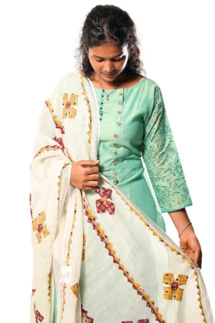 Handmade Pure Linen Applique Cut Work Dupatta (Mix)