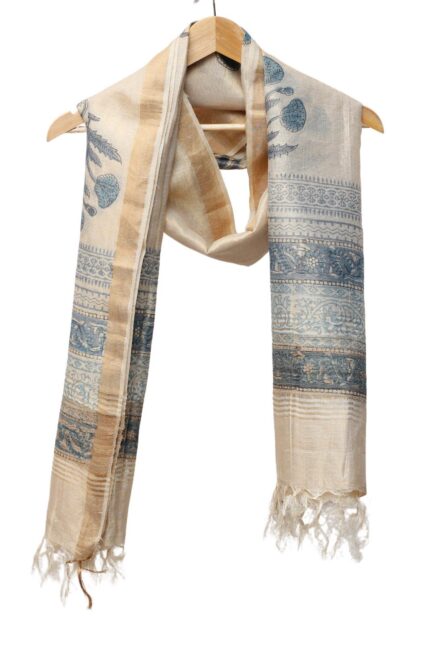Handcrafted Block Printed Kosa Silk Dupatta (Cream)