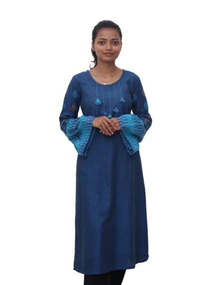 Tisser Block Print Ikat Bell Sleeve Embroidery Kurti