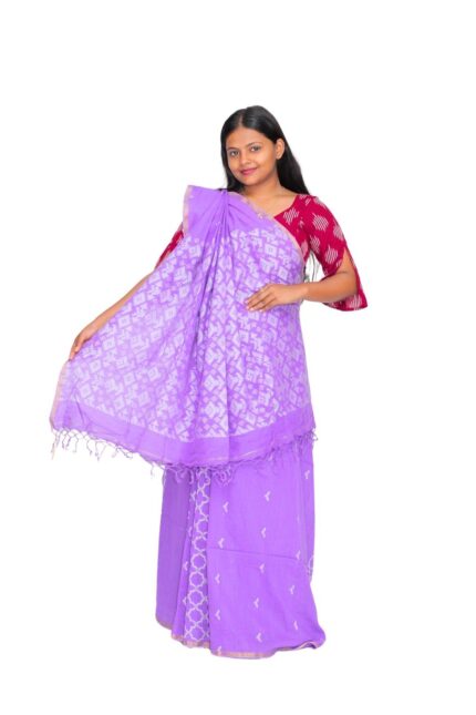 Tisser Handloom Jacquard Cotton Saree with Blouse Piece, Light Purple, Classic Fit