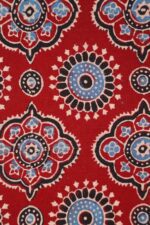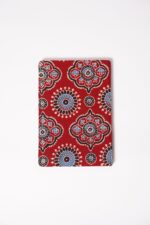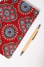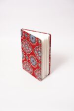 This diary has a rich maroon-red fabric cover adorned with intricate traditional patterns. The designs feature circular and floral motifs in shades of blue, black, and beige, arranged symmetrically to create a striking aesthetic. The patterns resemble classic hand-printed or block-printed textile art, giving the diary an ethnic and elegant touch. Its hardcover provides durability, while the soft texture makes it pleasant to hold. The diary appears to be of medium size, making it perfect for personal journaling, daily reflections, or creative writing. The overall look blends tradition with functionality, making it a beautiful keepsake for one’s thoughts and ideas.