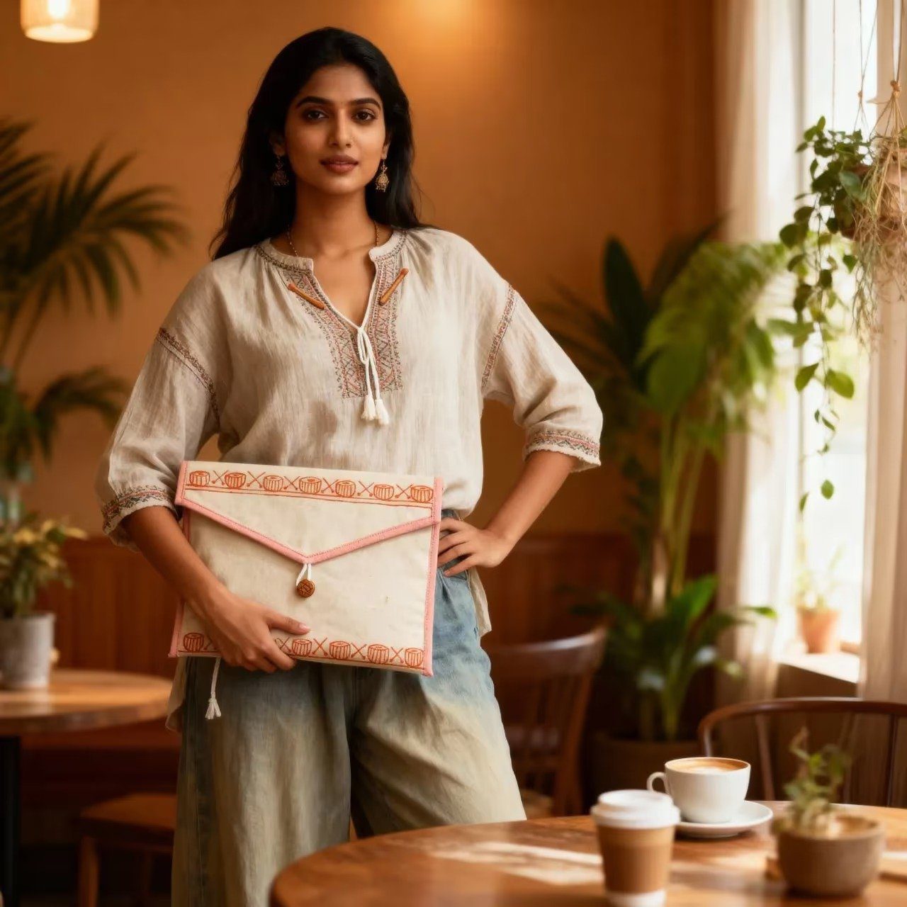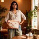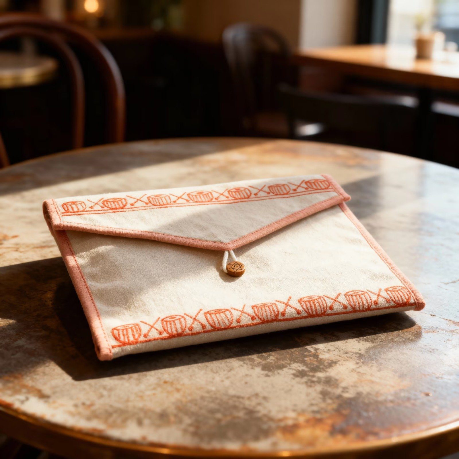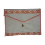 This Canvas Cotton Folder is a beautiful handmade storage solution that brings together style and function. Made from natural canvas cotton fabric with a hand-painted damroo design, it’s perfect for keeping your documents, papers, and small items organized. The folder features two main compartments that give you plenty of space to sort and store different things. With its warm cream color, coral border trim, and unique wooden button closure, this folder looks great whether you’re using it at home, in an office, or while traveling. The hanging loop makes it easy to store on a hook or wall mount. This is not just a folder – it’s a piece of handcrafted art that helps you stay organized while adding a touch of ethnic charm to your space.
