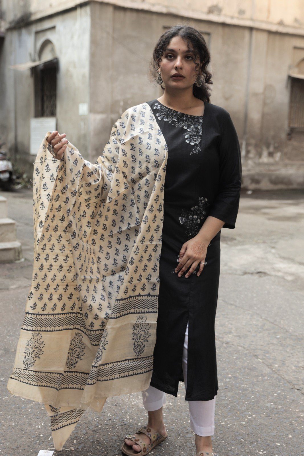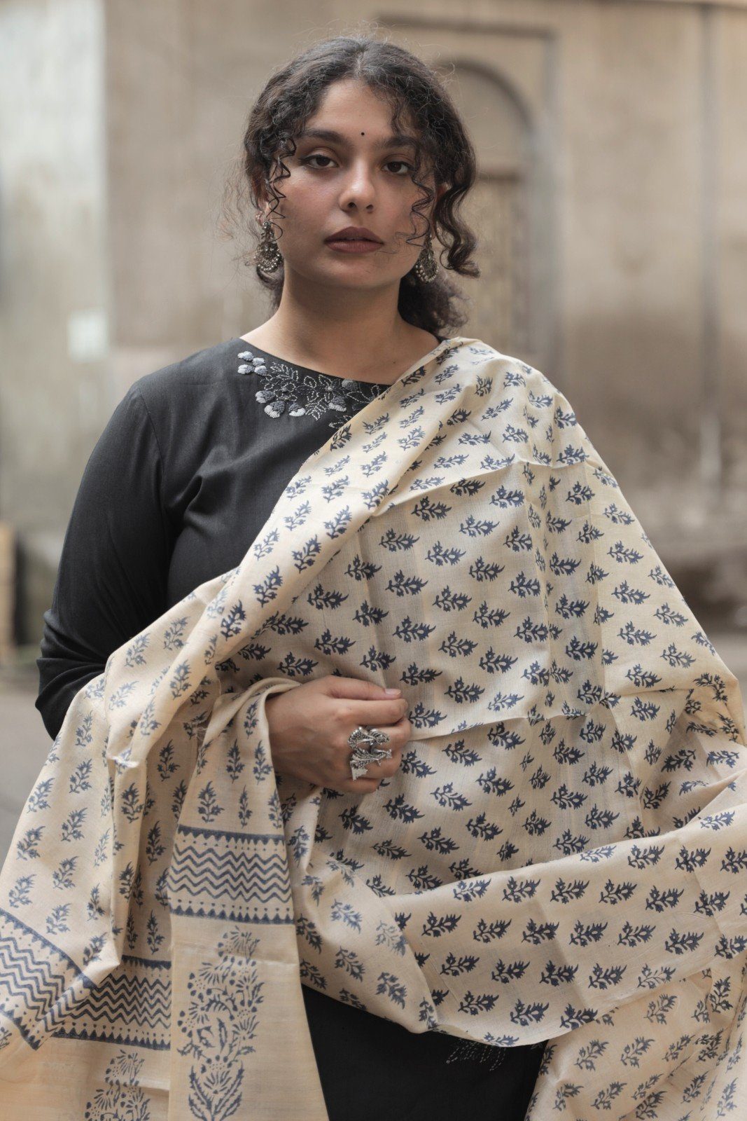 Each piece is crafted by skilled artisans using age-old techniques, making every dupatta unique in its motifs and charm. Lightweight yet luxurious, it drapes beautifully, adding a touch of rustic sophistication to both ethnic and fusion outfits.