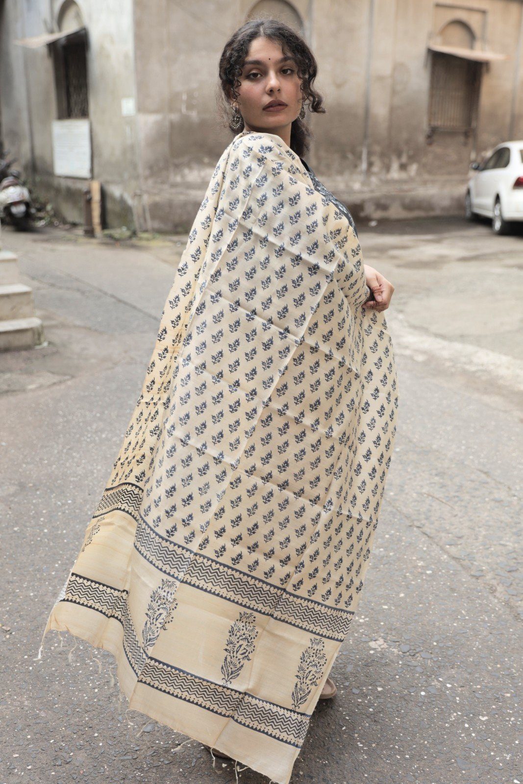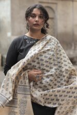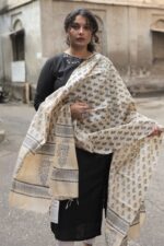 Handcrafted Block Printed Kosa Silk Dupatta (Cream)