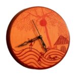 This Handcrafted Wooden Wall Clock is a beautiful piece of home decor that combines function with the look of traditional Japanese art. Made from wood, it features a scenic landscape inspired by Mount Fuji, cherry blossoms, and waves. With its warm coral orange and earthy tones, it adds a natural and artistic touch to any room. Not only does it tell time clearly, but it also makes your space look more interesting and cultural. Perfect for those who love Japanese themes or want a unique decorative piece, this clock fits well in living rooms, bedrooms, or offices. Its simple style helps it blend with many interior designs while giving your wall a special look.