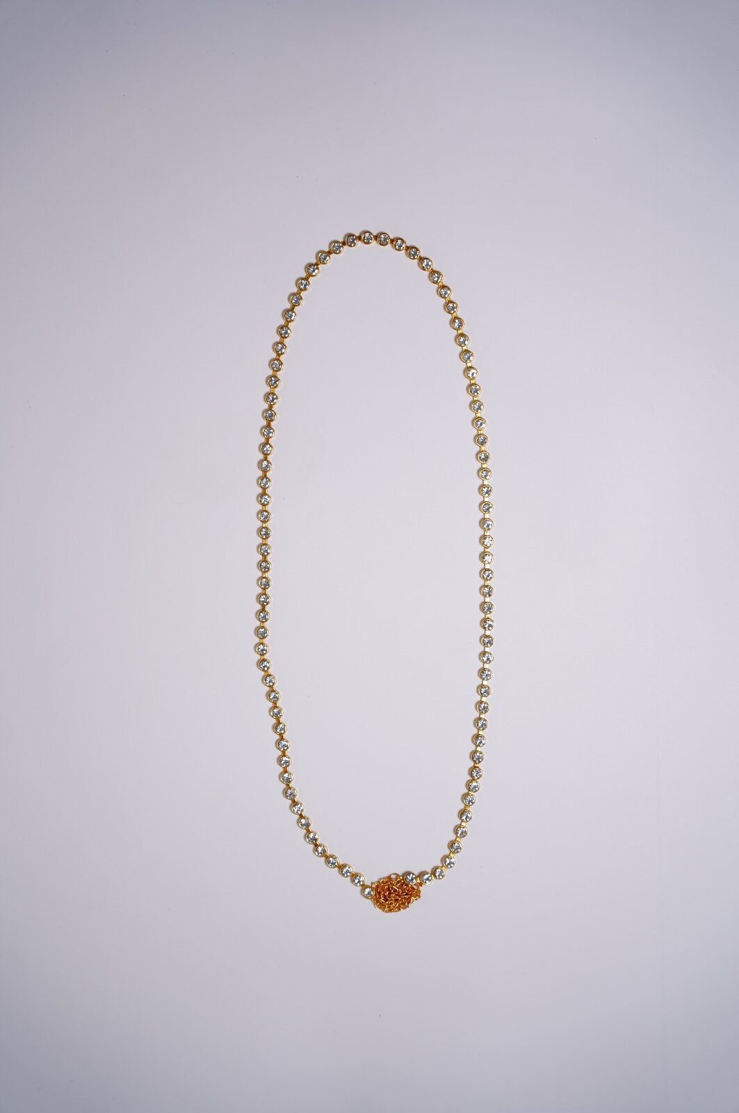 This Kamarpatti features a gold-plated base adorned with rows of delicate, lustrous white pearls that form a graceful and feminine waistline. The pearls are carefully strung to create a smooth, flowing design that sits comfortably on the waist while enhancing the silhouette.