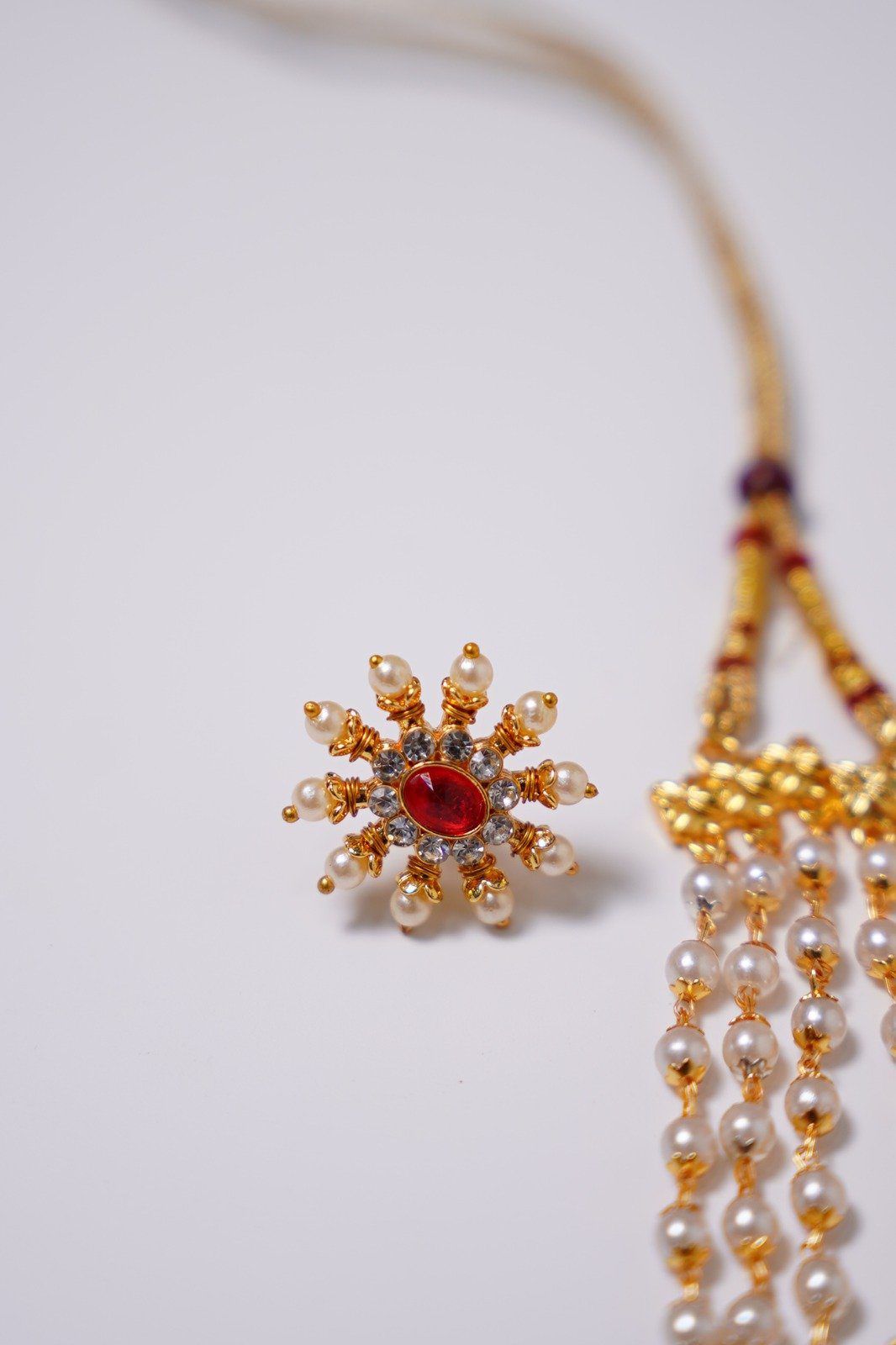 Handwork Gold-Plated Pearl and Rhinestone Kamarpatti ₹375