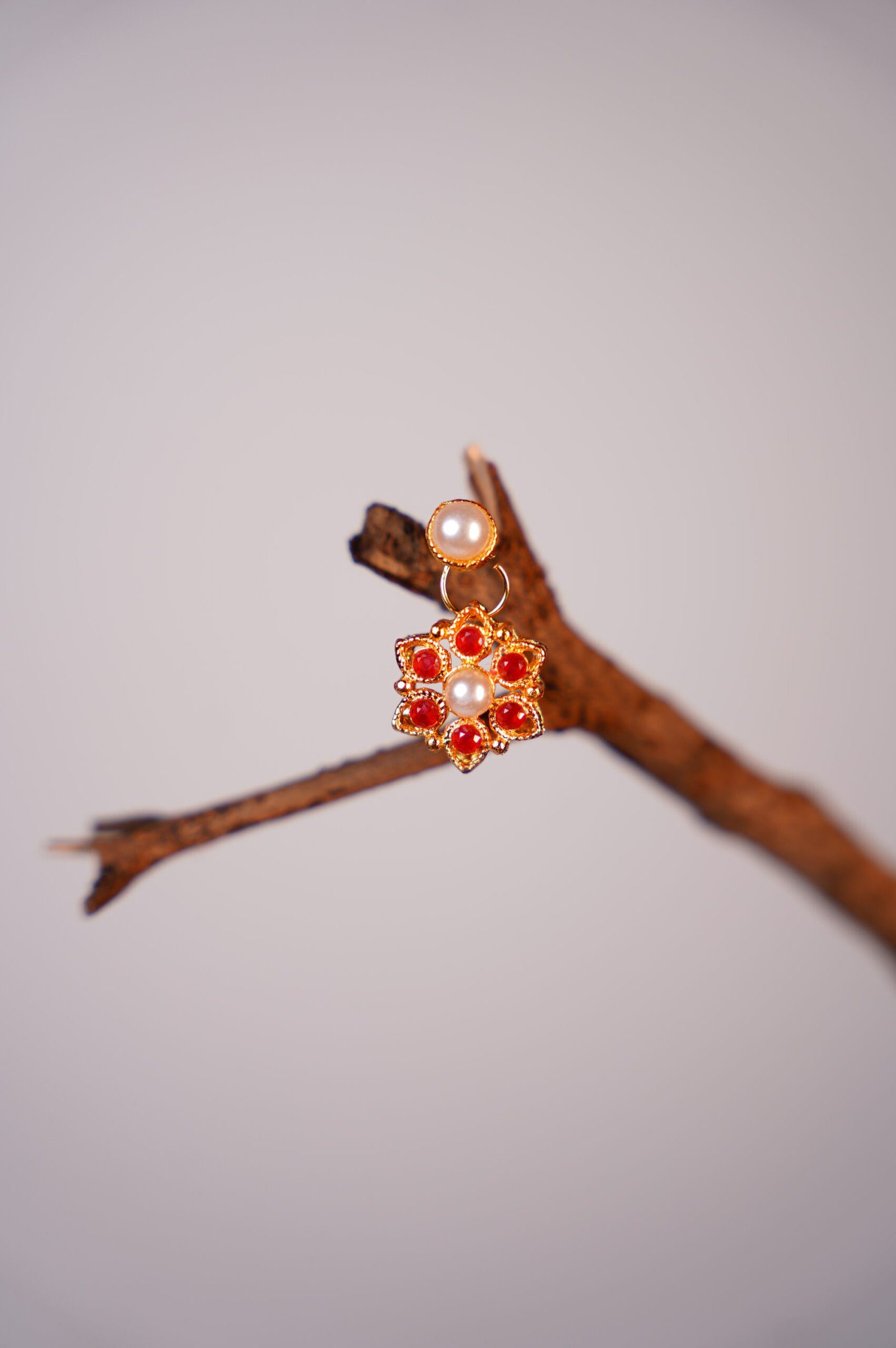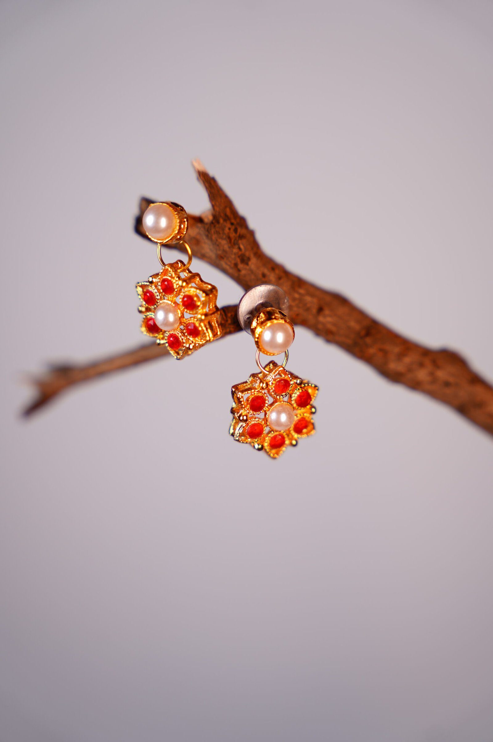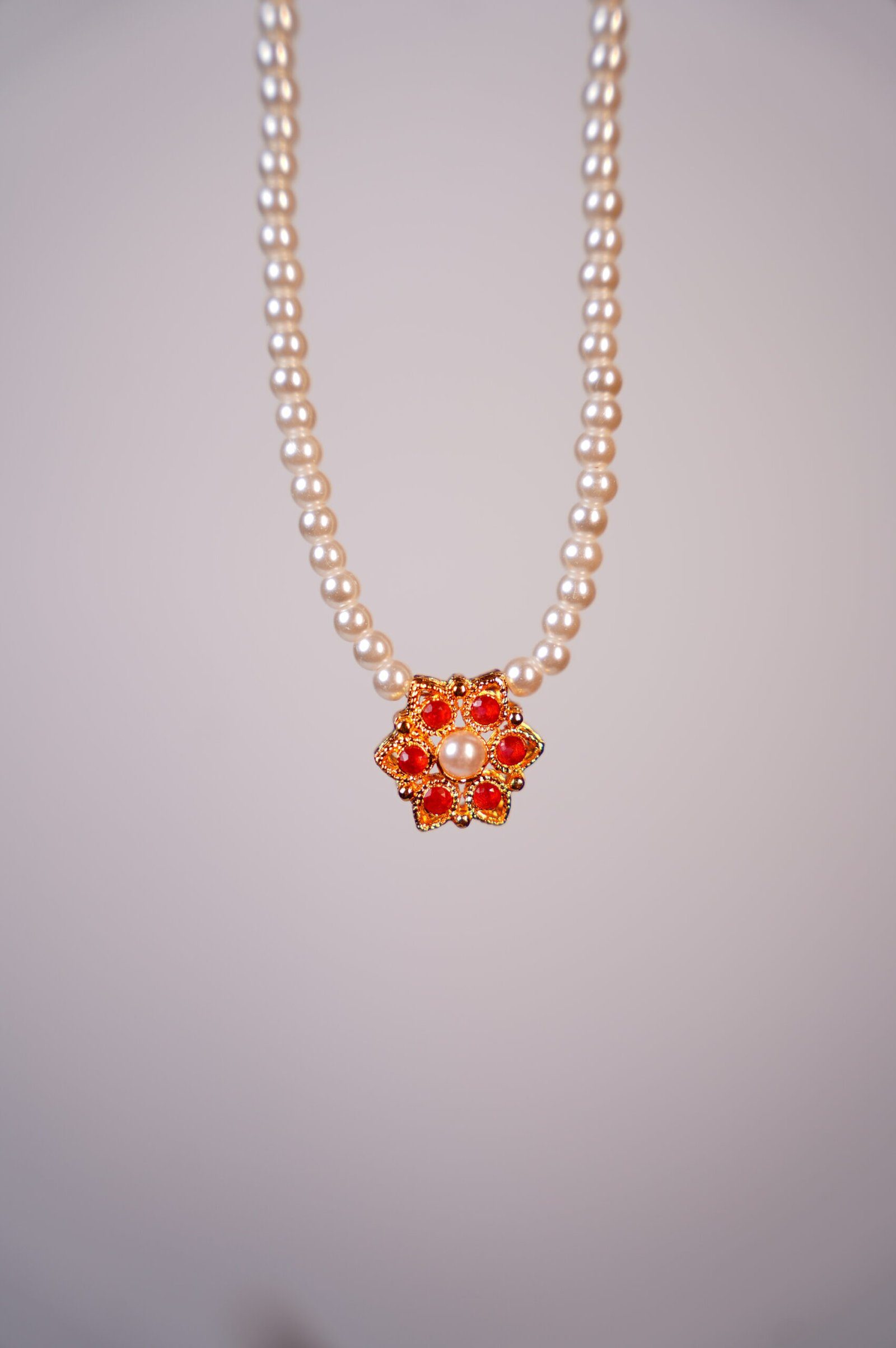 Enhance your look with this exquisite pearl necklace and earring set, featuring delicate gold-toned floral accents in striking red and white hues. The classic beauty of pearls is beautifully complemented by the vibrant floral design, creating a perfect blend of elegance and charm. Ideal for weddings, festive celebrations, parties, or special occasions, this set adds a graceful touch to both traditional and contemporary outfits. A timeless and feminine jewelry set that makes a thoughtful and stylish gift.