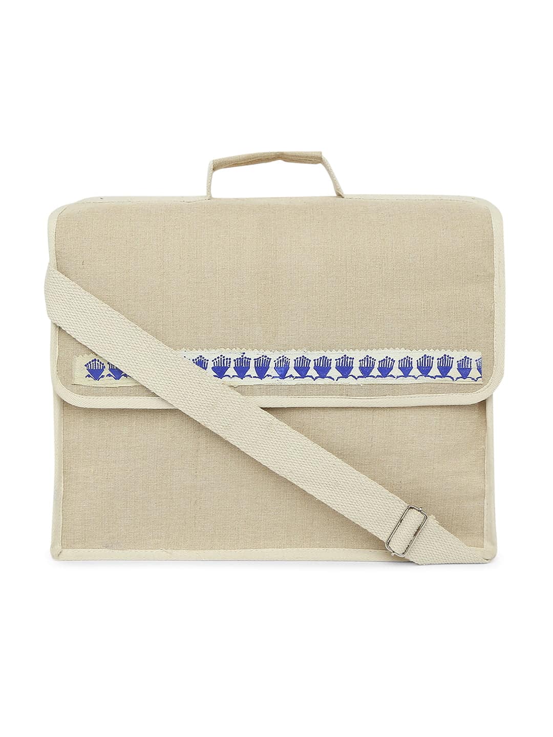 A beautiful handloom creation of jute. This laptop bag is beige in color and simple.