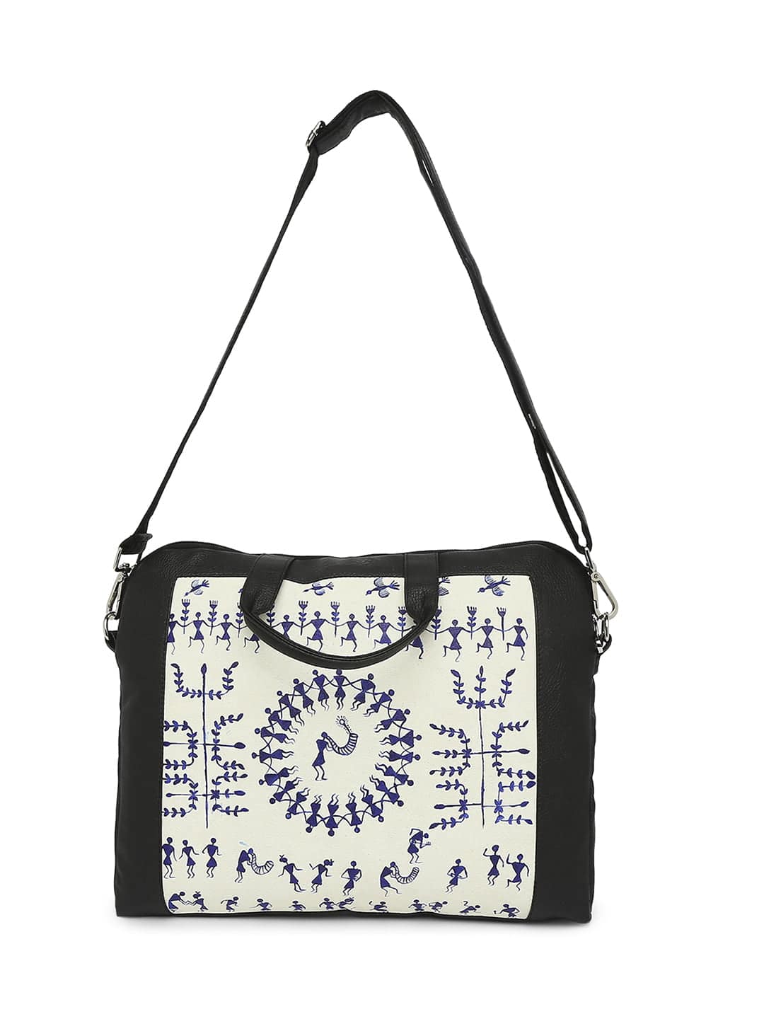 Leather laptop bag Designed for the corporate world, this work bag from Tisser India will be a great pick to carry a laptop in style. warli hand-painted artwork gives a stylish look to the laptop bag. it is durable and features multiple compartments and a long shoulder strap.