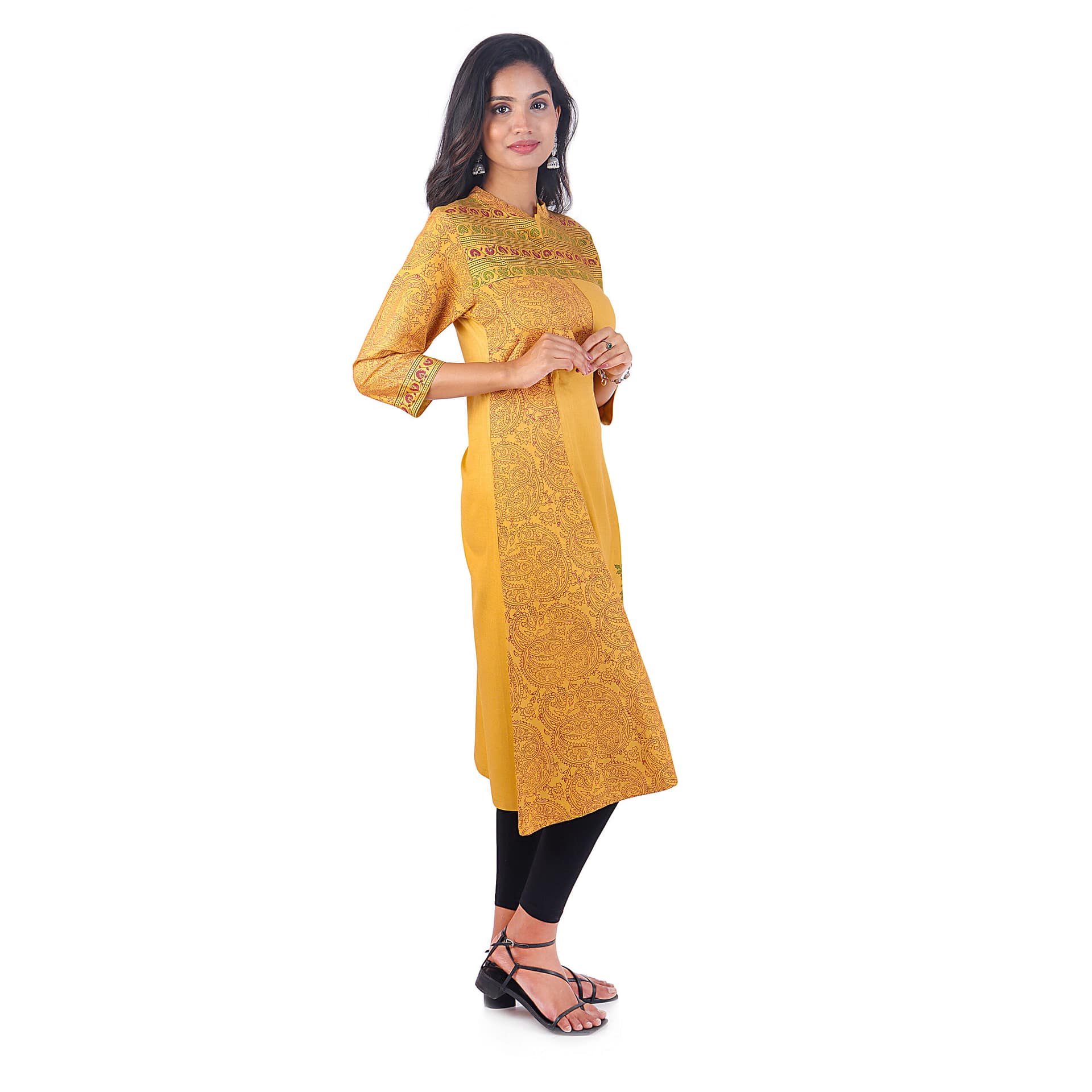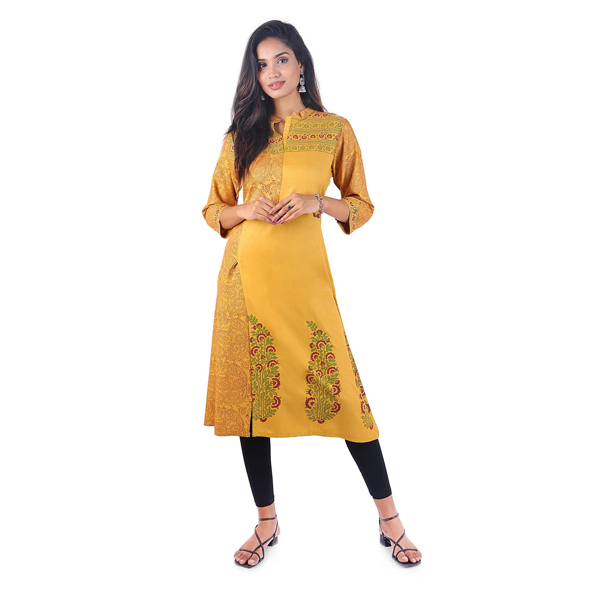 Hand block printed kurti with collar and slit from Tisser collection. The product which ensembles the touch of hand block printed with Rasgulla fabric, adds richness to the attire.