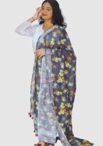 Pure Linen Digital Print with Silver Border Dupatta