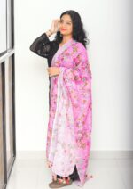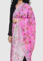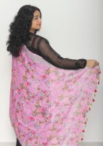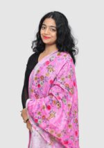 Pure Linen Digital Print with Silver Border Dupatta