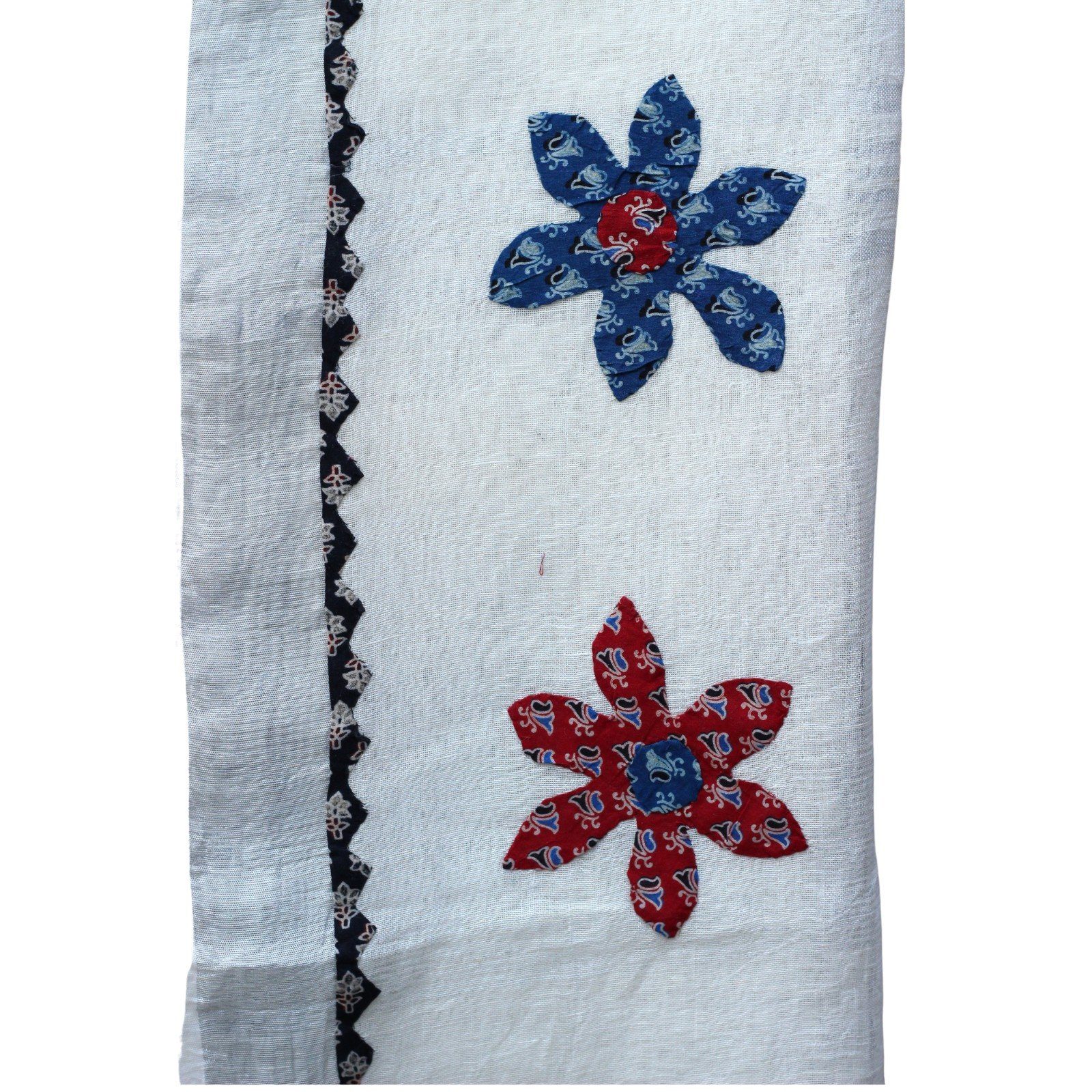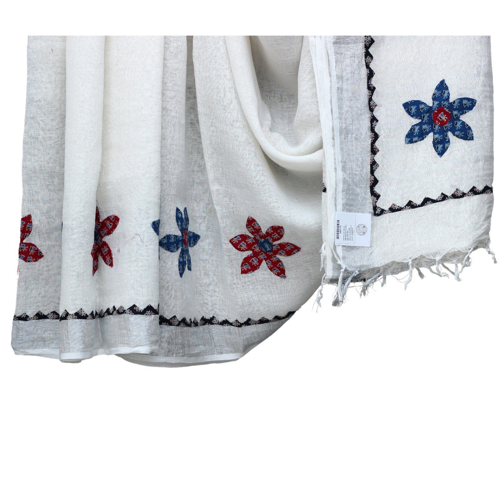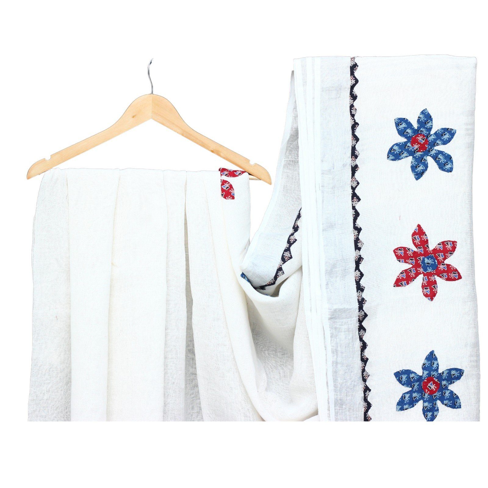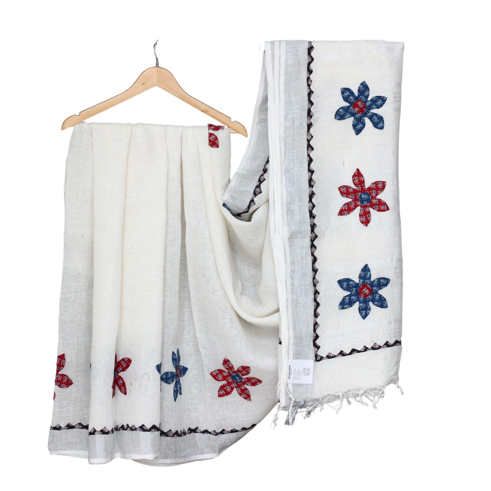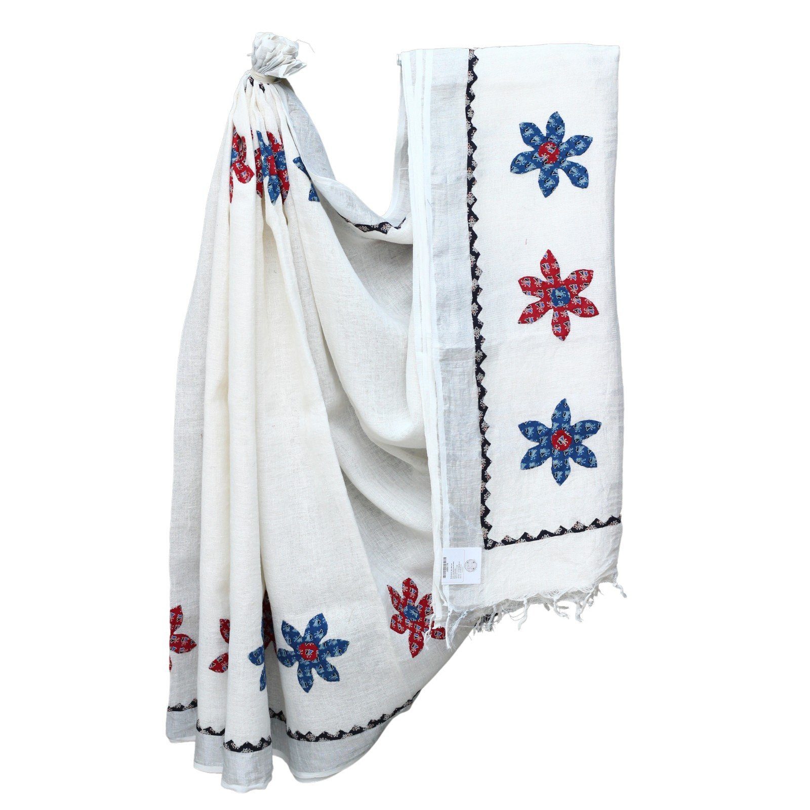 This light and airy Applique Saree is the perfect summer accessory for any wardrobe. Made ofLinen fabric used for applique. These are made by our artisans from Barmer, India, it features exquisite hand-stitched and applique detailing, making it a stylish yet timeless piece. Perfect for a summer wedding or a party !
