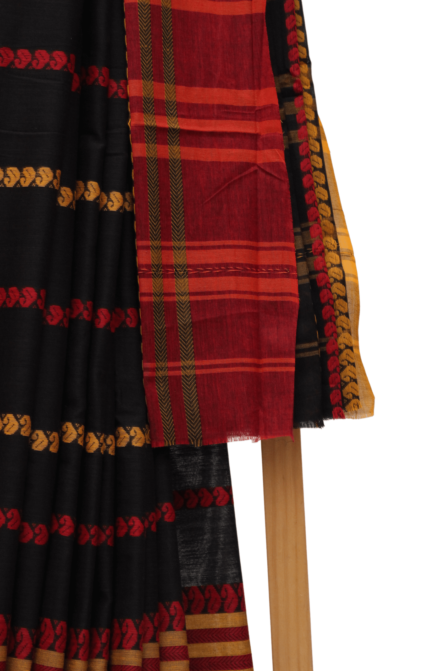 Home Apparels Women Saree Tisser Dhanekhali Tant Cotton Saree with Attached Blouse Piece