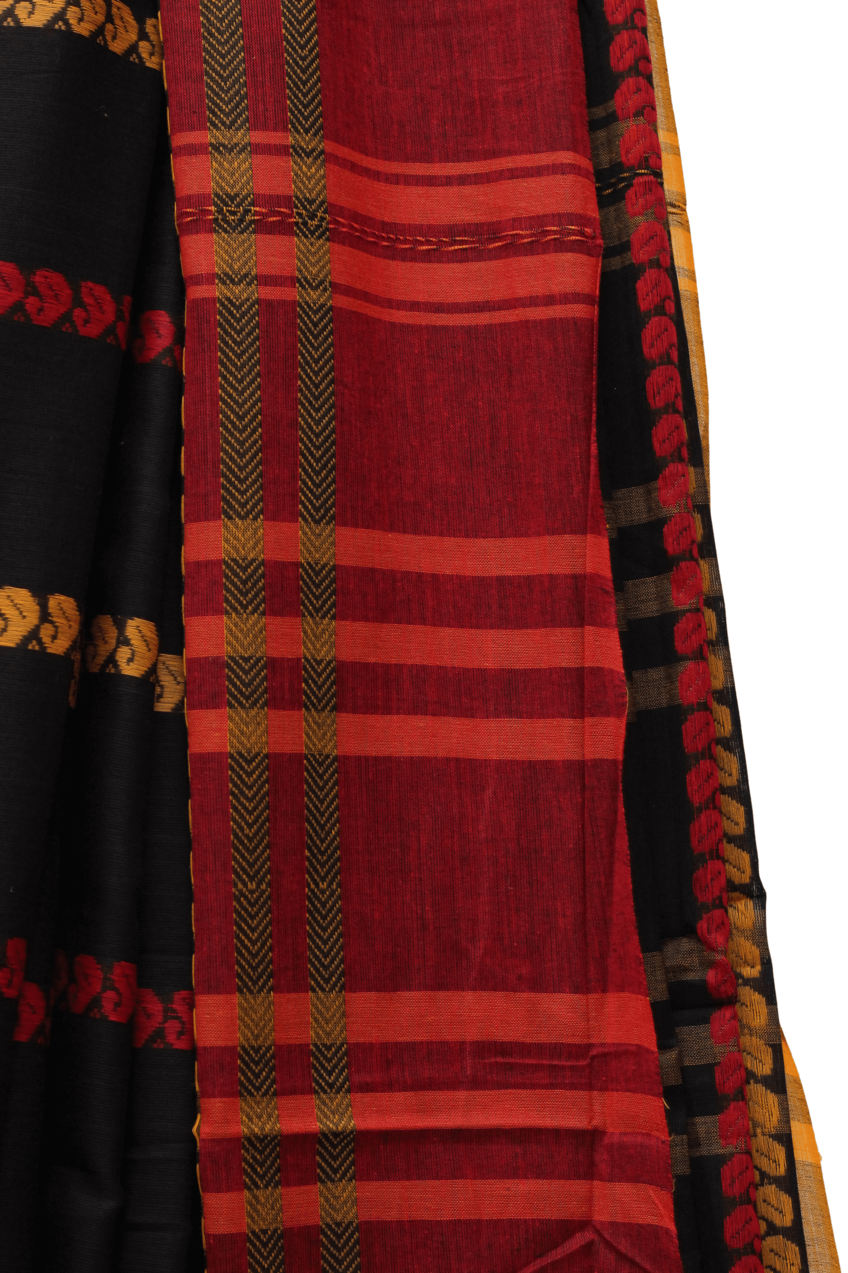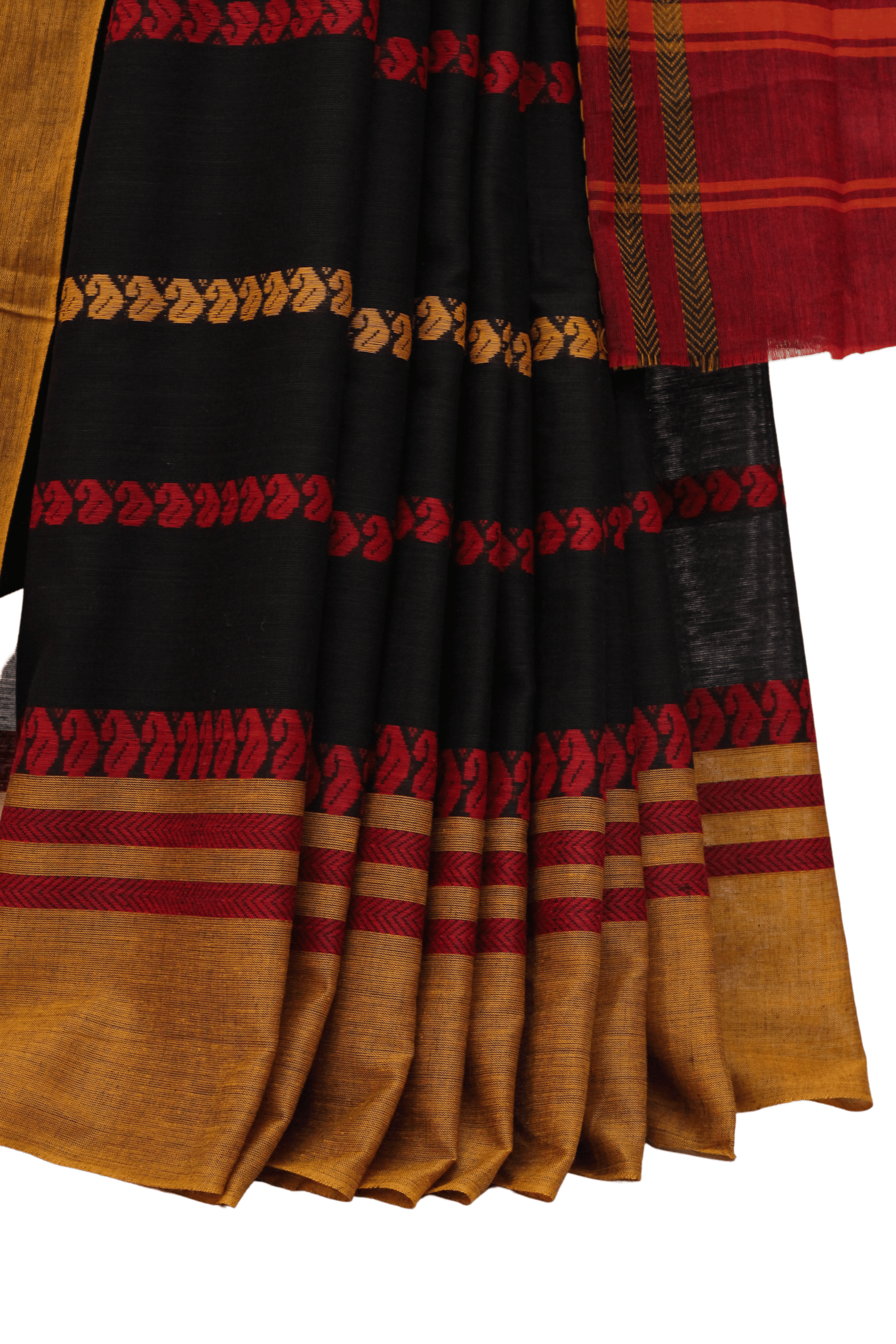 Handloom Handwoven Dhanekhali tant saree from the highest quality cotton, this saree epitomizes exquisite craftsmanship.