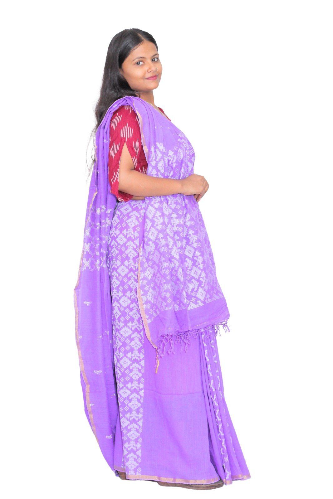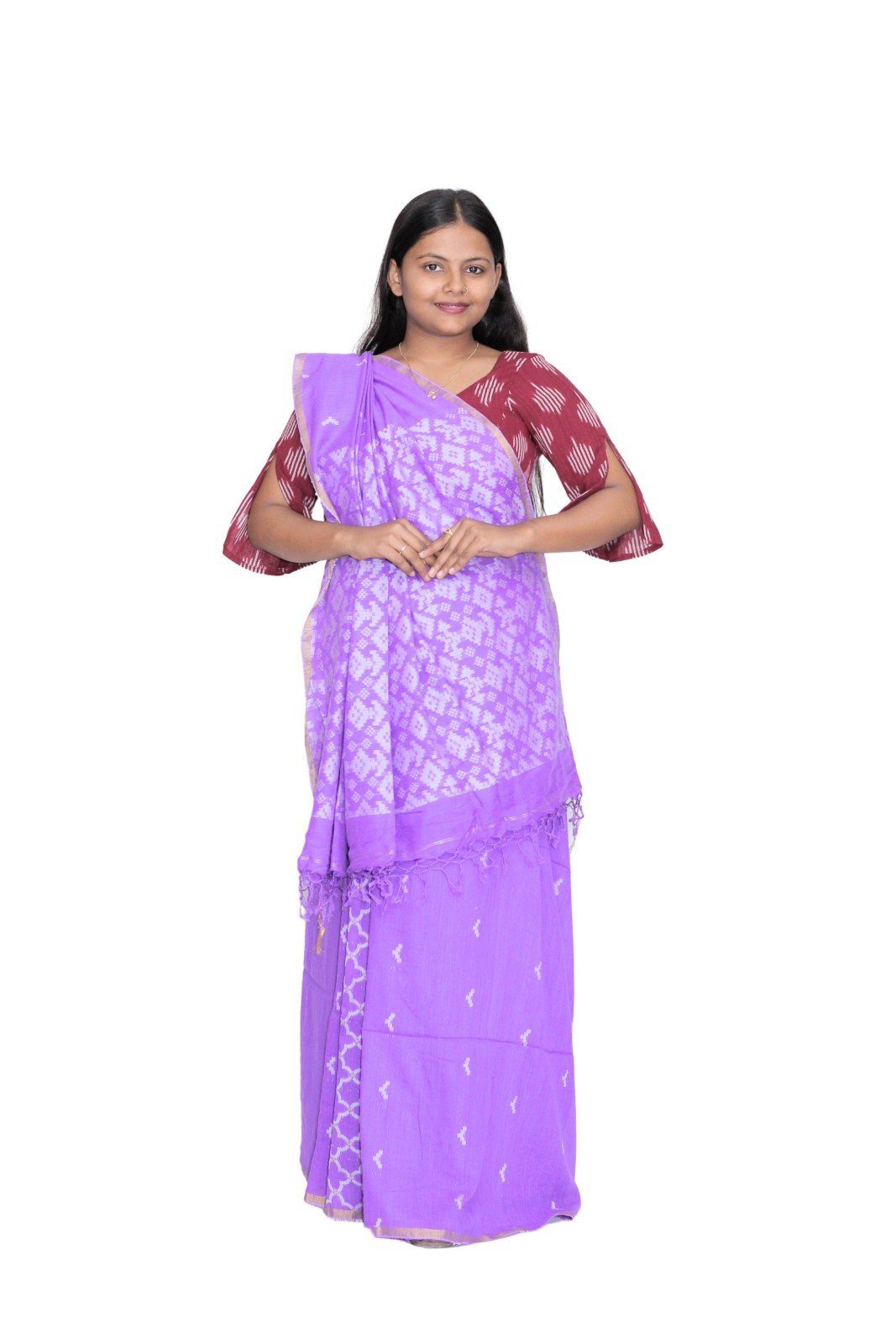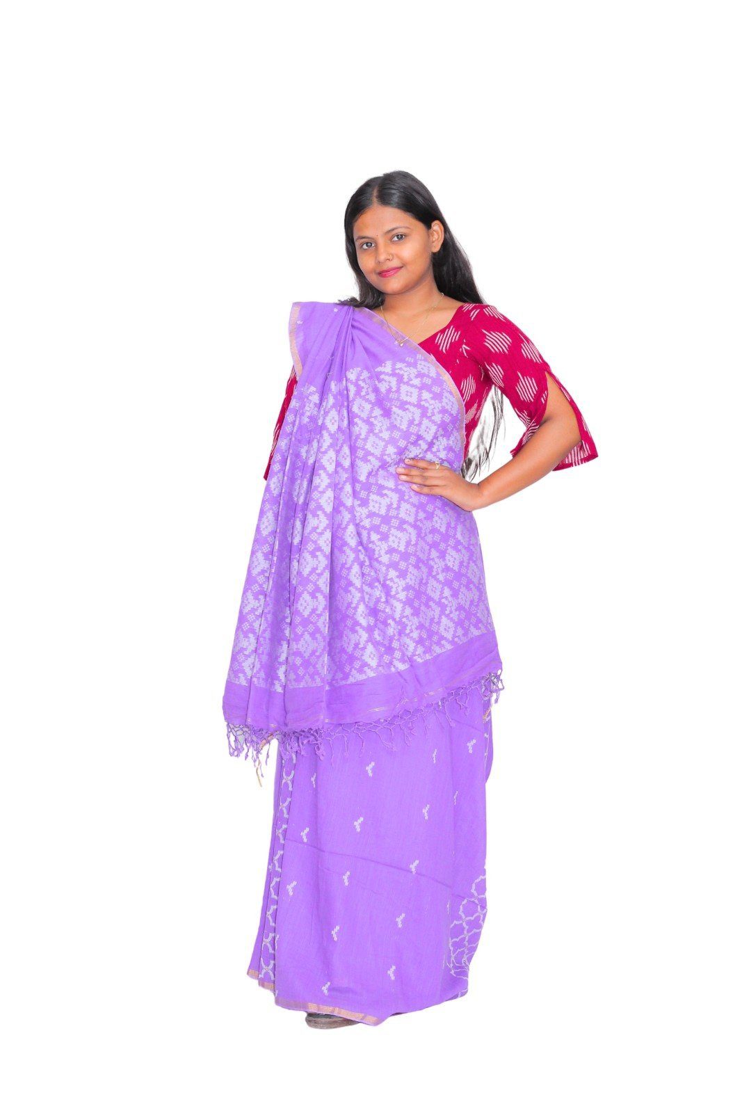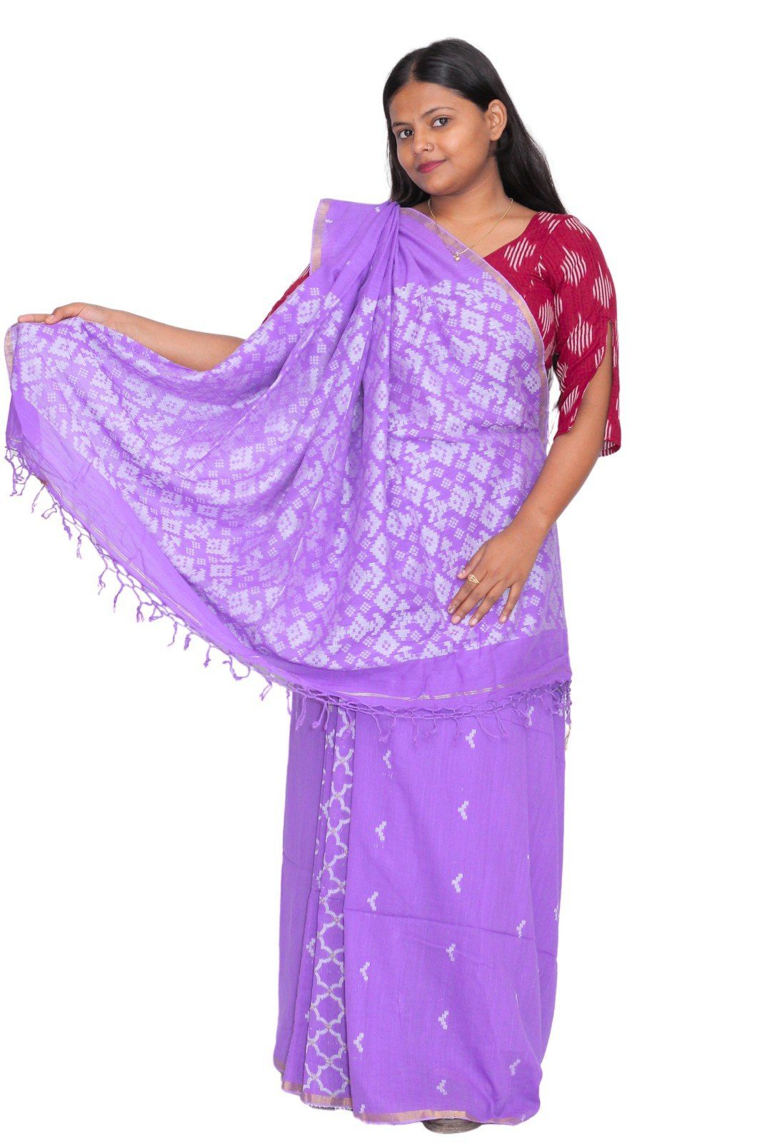 Tisser Handloom Jacquard Cotton Saree with Blouse Piece, Light Purple, Classic Fit