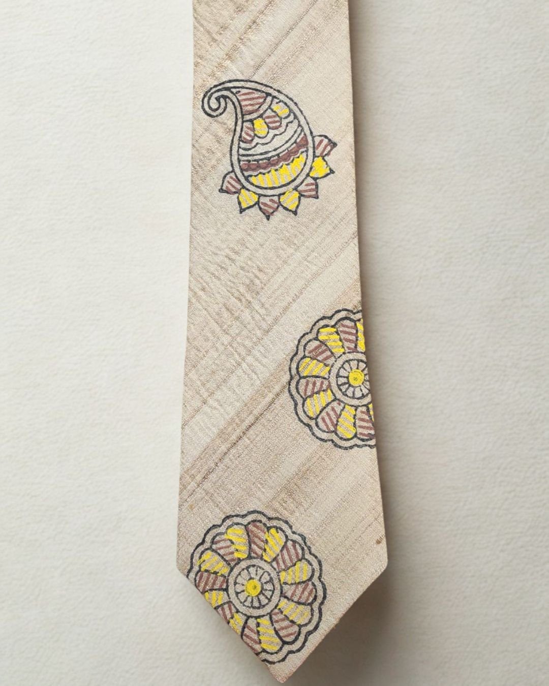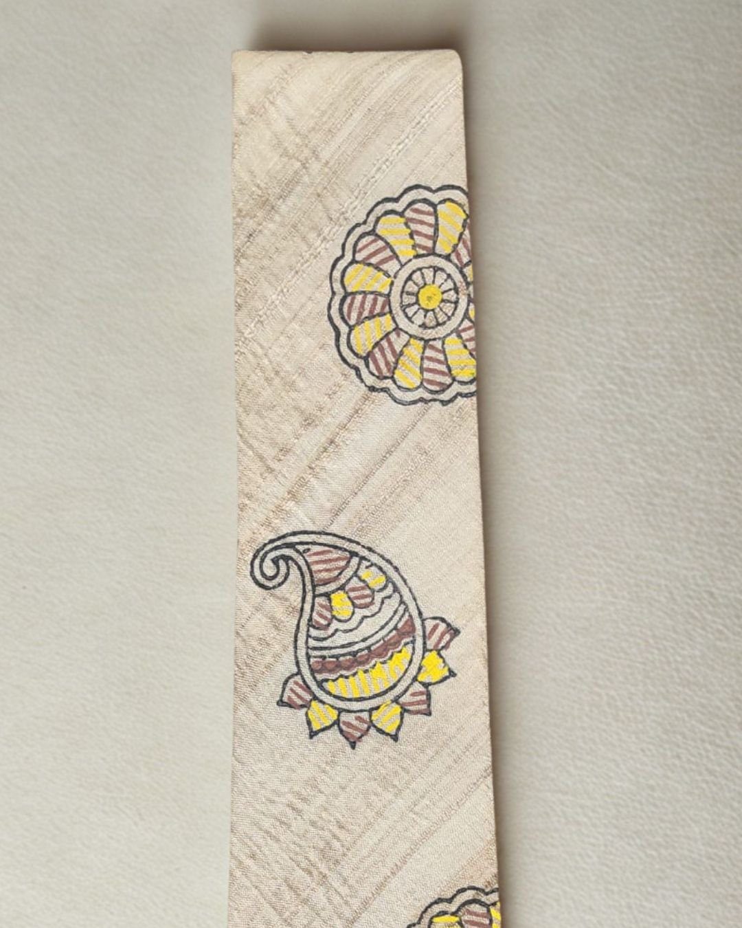 Tisser Handpainted Madhubani Silk Tie (Beige , Yellow & Brown)