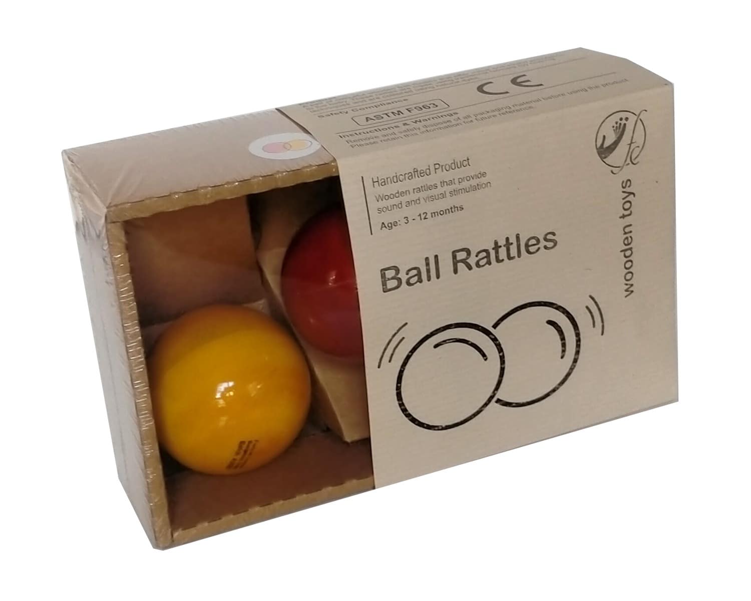 The Channapatna Toys Ball Rattle set of 2 is a charming and eco-friendly playtime accessory. Handcrafted in the traditional style of Channapatna, India, these wooden rattles feature brightly colored spherical shapes with intricate hand-painted designs.