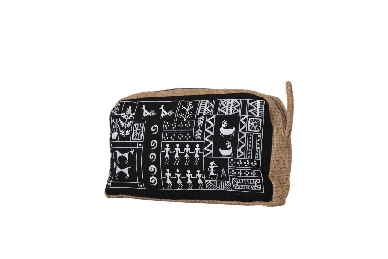 Warli Hand-Crafted Jute Utility Pouch