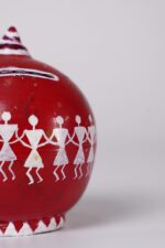 This Warli hand-painted piggy bank is a charming handcrafted clay coin bank inspired by India’s traditional tribal art. Made from natural clay and finished in a rich earthy red tone, it reflects the rustic beauty of indigenous craftsmanship.