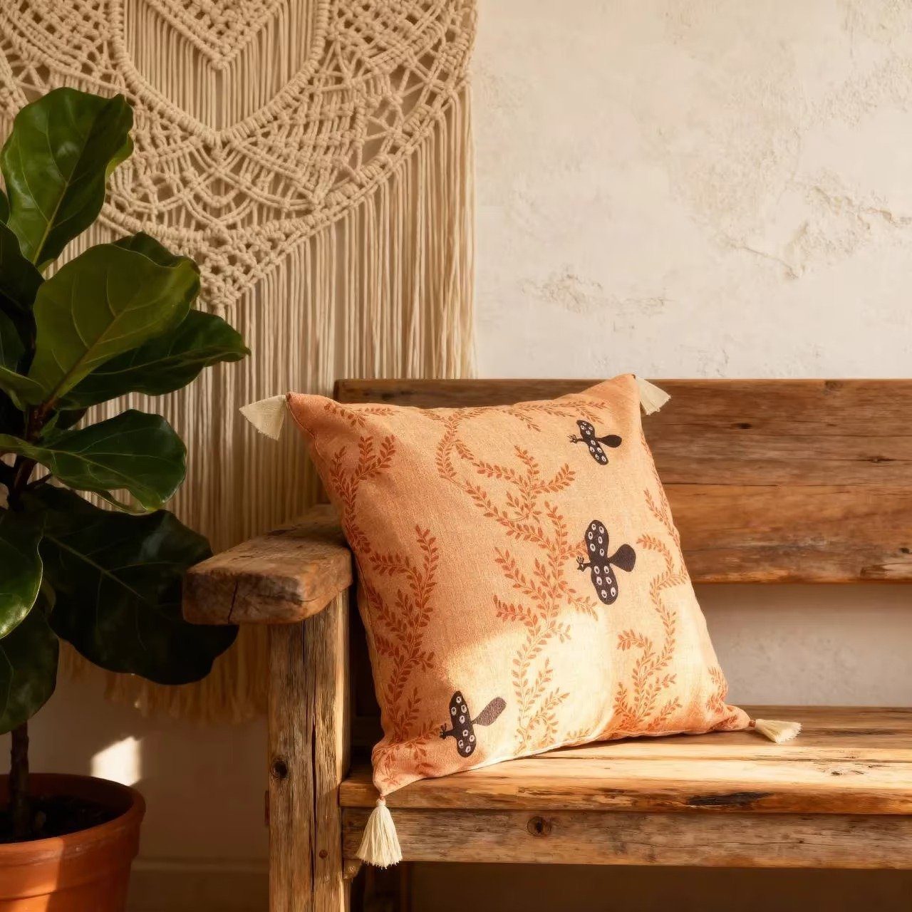 Each cushion cover is individually handpainted by skilled artisans, making every piece truly one of a kind. The soft cotton base ensures comfort and durability, while the earthy color palette blends seamlessly with both modern and traditional interiors.