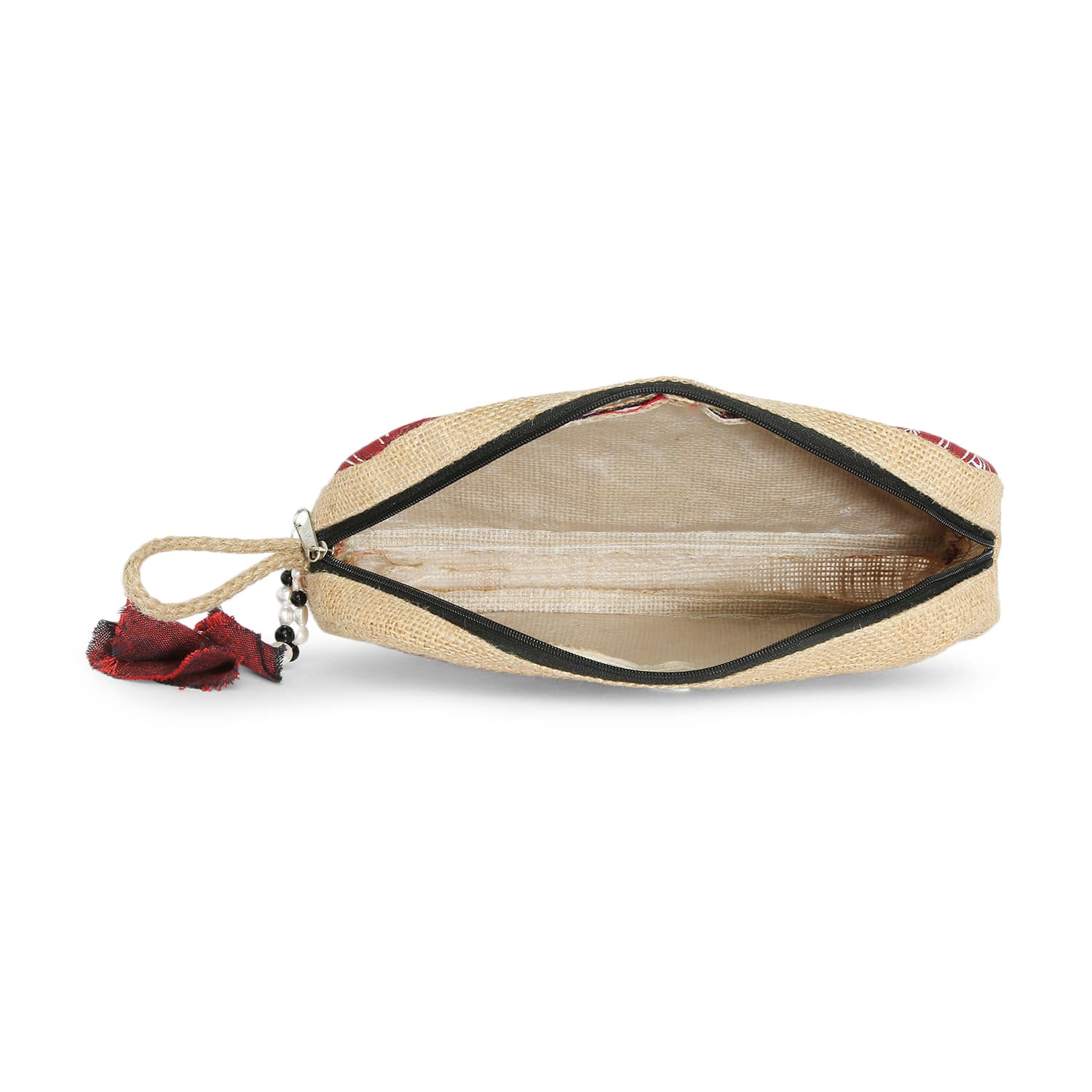 Tisser’s Warli hand-painted and Hand Woven, this Natural Jute Utility Pouch is a versatile choice for both men and women.