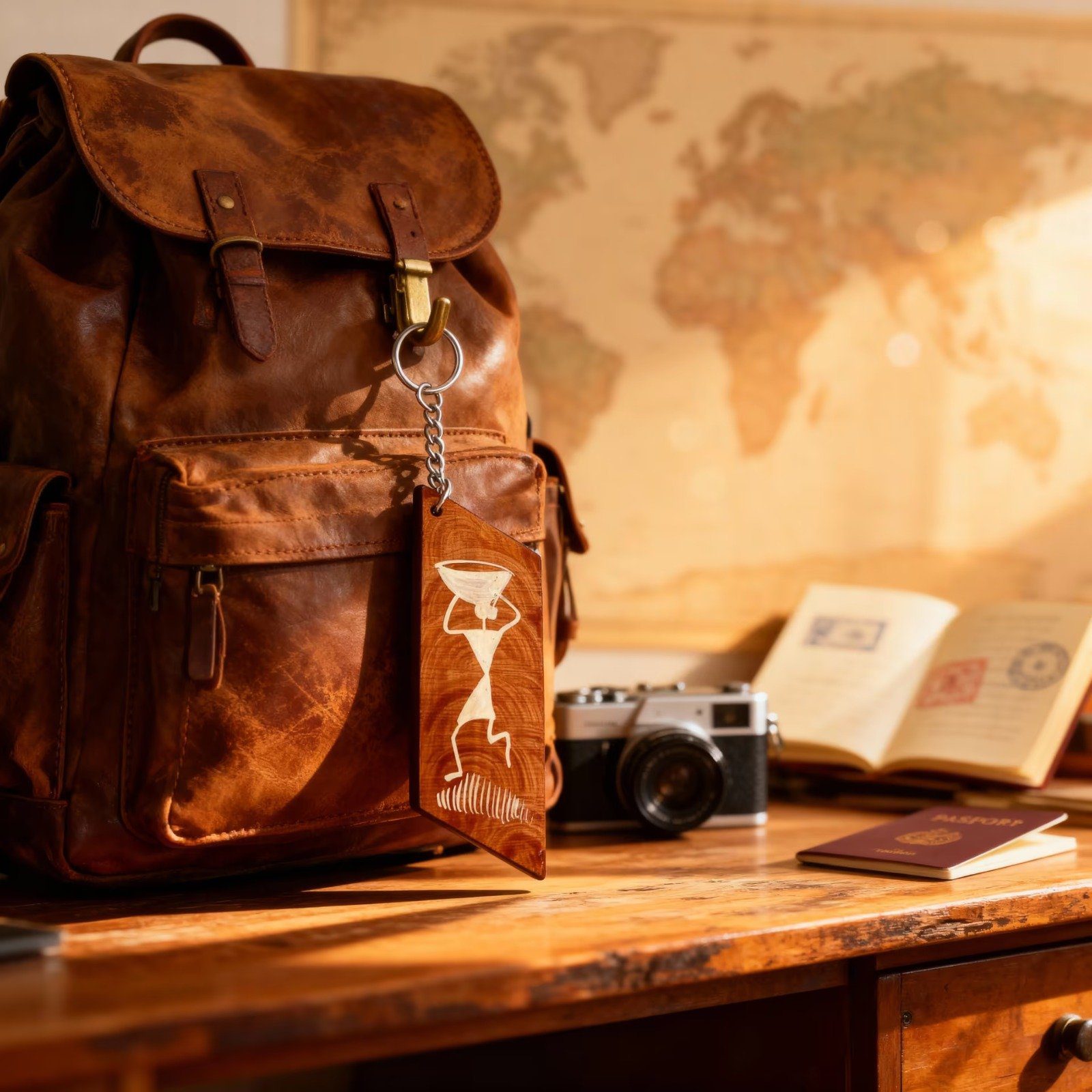 Keep your keys organized in style with this handmade Wooden Warli Art Keychain featuring a beautiful warli design. Made from natural wood with white engraved details, it measures about 4-5 inches and comes with a sturdy metal ring and chain. The rustic vintage look makes it perfect for travel lovers, students, or anyone who wants a simple yet meaningful accessory. This eco-friendly keychain is durable, practical, and makes a great gift that lasts.