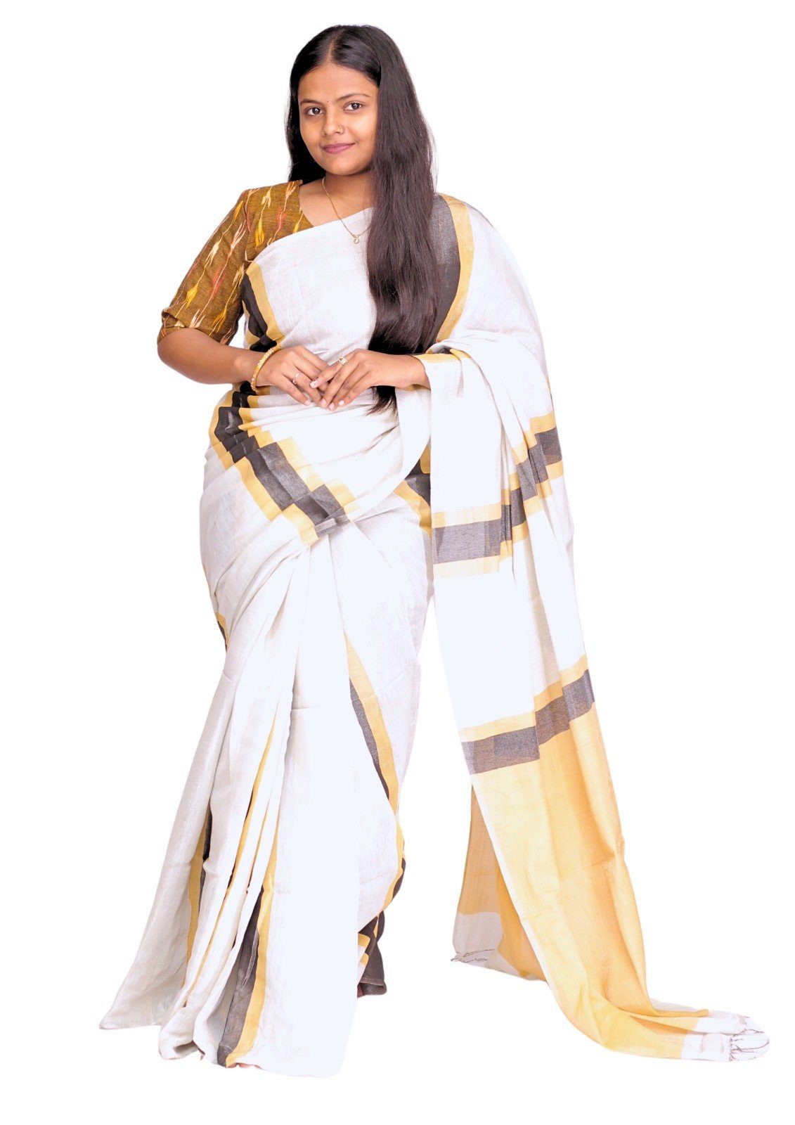 Zari Handweave Tissue Saree with Blouse Piece (Golden)