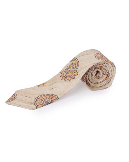 Tisser Handpainted Madhubani Silk Tie (Beige , Red & Yellow)