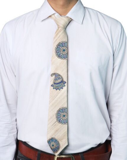 Tisser Handpainted Madhubani Silk Tie (Beige,Blue)